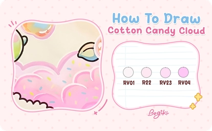 Begin with a very light layer using RV01. Let your strokes move softly across the surface so the base feels airy and open. This first layer creates a gentle foundation for drawing cotton candy clouds in a calm and simple way.