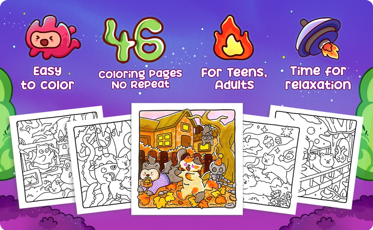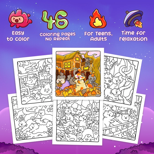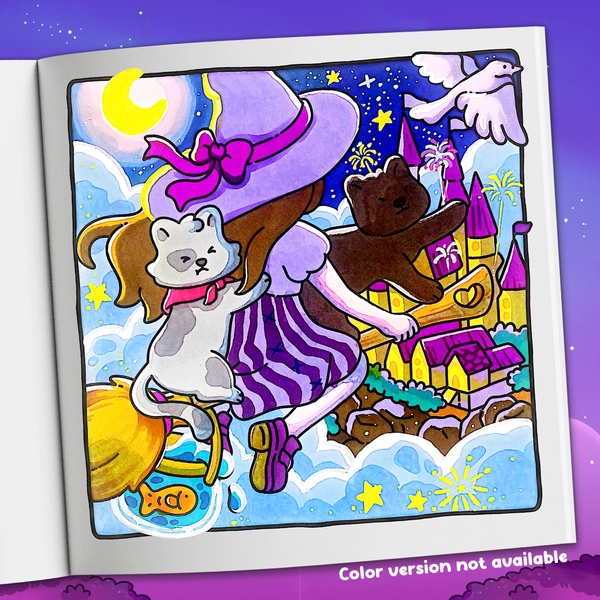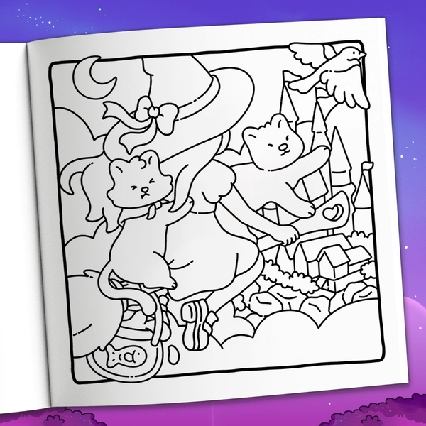 In this book, you'll meet clever and mischievous cats causing trouble wherever they go, creating fun and unexpected moments. Each page takes you to a new land — from witchy realms filled with haunted castles, flying brooms, and bubbling cauldrons to whimsical lands full of flying creatures and lovable friends.